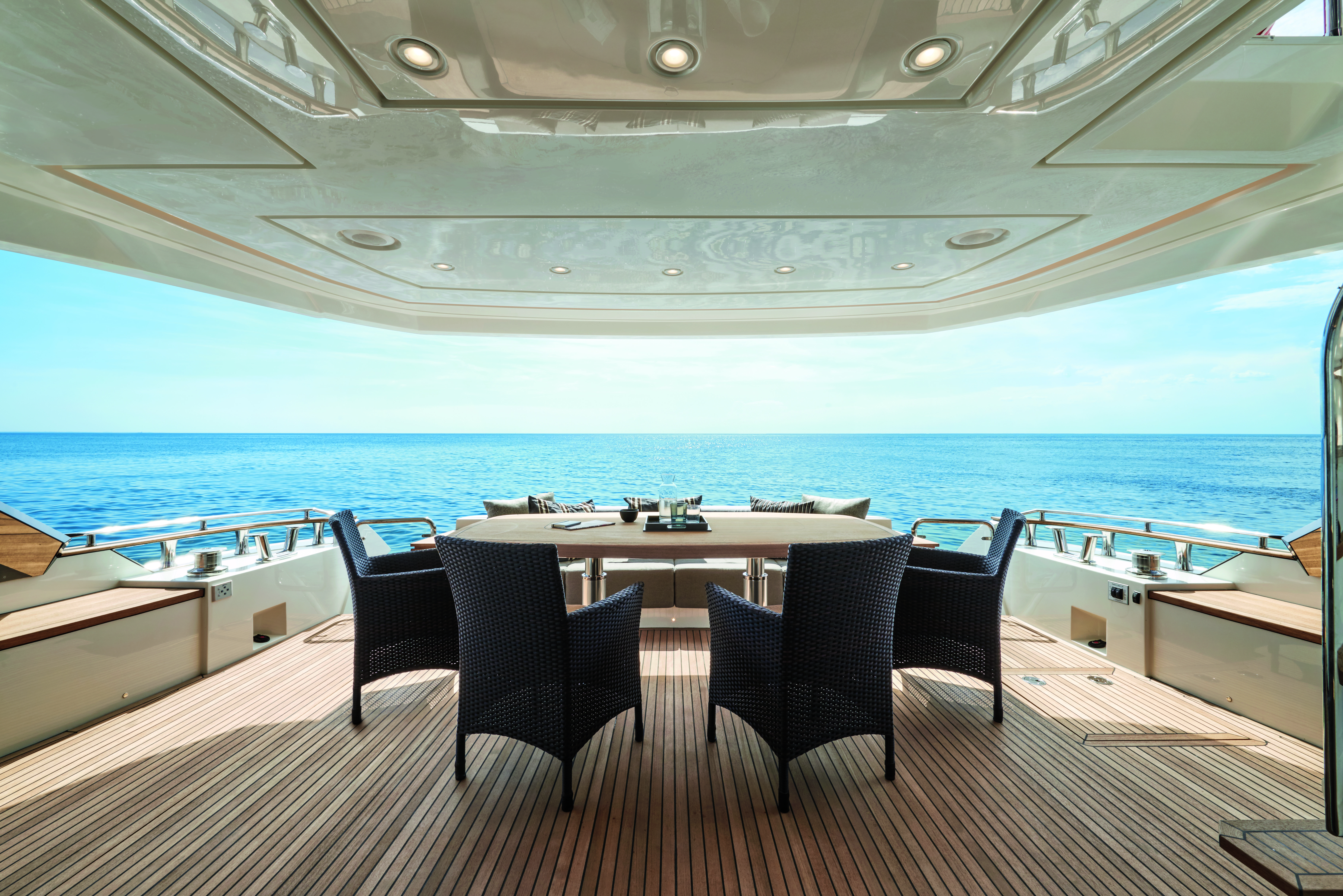 Top Yachten für die Adria. Die italienischen Monte Carlo-Yachten gehören schon seit jeher zu den Bestsellern unter den High Performance Sport-Yachten. Diese Luxus-Boote zeichnen sich durch Qualität, Langlebigkeit und Bedienungskomfort aus. Diese Yachten sind echte italienische Wertarbeit und ideal für Eigner, die mit ihren Schiffen schöne Touren unternehmen, oder einfach nur darauf entspannen wollen. Die kleineren Modelle können noch allein ohne Crew gefahren werden, bei den größeren Yachten empfiehlt sich allerdings die Unterstützung durch eine professionelle Mannschaft. Die Werft aus Monfalcone ist seit Jahren einer der führenden Yacht-Produzenten. Die Modell-Palette reicht von Booten im 15-Meter-Bereich bis zu Superyachten, die jeden nur erdenklichen Komfort bieten. Diese Schiffe kosten viele Millionen Euro und sind schwimmende Paläste, die jeden Wunsch erfüllen. Ein Tag an Bord so einer Yacht ist ein echtes Erlebnis. Die 24 Meter lange Monte Carlo 80 gehört bereits in die Kategorie der Top-Yachten. Sie bietet bis zu 8 Gästen Platz, die meist von einer Crew betreut werden. Zwei je 1650 PS starke MAN-Motoren ermöglichen dieser Yacht eine Reisegeschwindigkeit von knapp 25 Knoten (50 km/h). Die Preise von Schiffen dieser Größenordnung werden üblicherweise nicht bekannt gegeben. Fotos: Monte Carlo Yachts I migliori yacht per l’Adriatico Da sempre gli yacht italiani Monte Carlo sono i bestseller tra gli yacht sportivi ad alte prestazioni. Queste imbarcazioni di lusso si contraddistinguono per la loro qualità, durata e comfort. Questi yacht Made in italy sono ideali per chi vuole fare bei giri in barca o anche semplice-mente rilassarsi. I modelli più piccoli possono essere guidati anche senza equipaggio, mentre per la conduzione dei modelli più grandi si consiglia comunque il supporto di personale professionista. Da anni il cantiere di Monfalcone è uno dei leader nella produzione di yacht. La sua flotta di modelli spazia dalle imbarcazioni di piu 15 metri ai superyacht che offrono ogni comfort immaginabile. Queste barche costano diversi milioni di euro e sono veri e propri palazzi galleggianti in grado di soddisfare qualsiasi desiderio. Una giornata a bordo di uno di questi yacht è davvero un’esperienza incredibile. Con i suoi 24 m di lunghezza, il Monte Carlo 80 rientra già nella categoria dei top-yacht. Offre spazio per 8 ospiti assistiti da un equipaggio. I due motori MAN da 1650 CV l’uno consentono a questo yacht di raggiungere una velocità di crociera di quasi 20 nodi (36 km/h). I prezzi delle barche di queste dimensioni solitamente non vengono resi noti. Foto: Monte Carlo Yachts